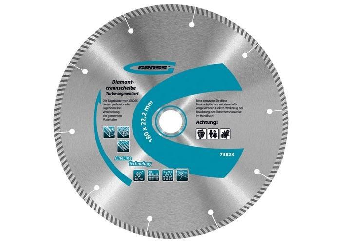 Алмазный диск размером Ø 115 х 22,2 мм торговой марки GROSS предназначен для резки «сухим методом» (без использования охлаждающей жидкости) изделий из твердых материалов: бетона, мрамора, шлакоблоков и гранита. Режущий слой диска высотой 10 мм содержит большое количество синтетических алмазов диаметром 40–50 мкм, которые обеспечивают эффективность проводимых работ и повышают износостойкость диска.