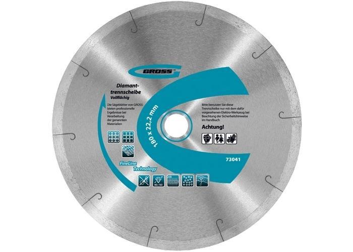Алмазный диск размером Ø 125 х 22,2 мм торговой марки GROSS предназначен для резки «мокрым методом» (с подачей охлаждающей жидкости) изделий из твердых материалов: бетона, мрамора, шлакоблоков и гранита. Режущий слой диска высотой 10 мм содержит большое количество синтетических алмазов диаметром 40–50 мкм, которые обеспечивают эффективность проводимых работ и повышают износостойкость диска.