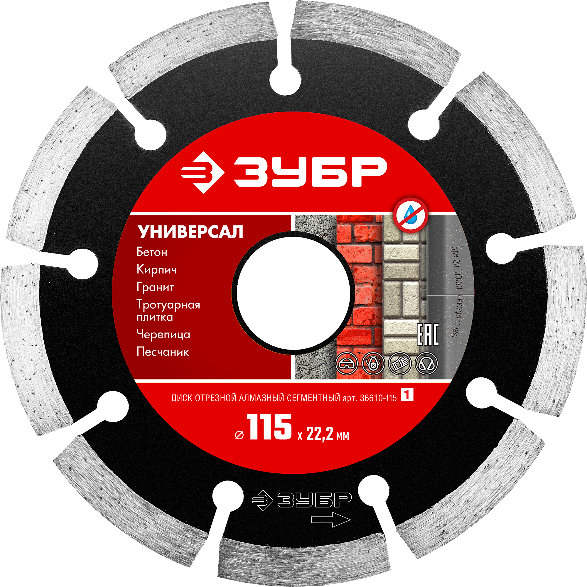 Резка бетона, кирпича, тротуарной плитки, бордюрного камня и других строительных материалов без принудительного охлаждения. Применяется на УШМ. Оригинальная сегментная форма режущей кромки позволяет быстро и эффективно осуществлять необходимые резы в обрабатываемом материале.