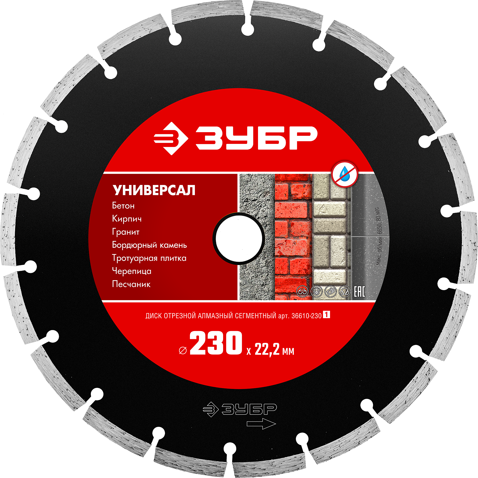 Резка бетона, кирпича, тротуарной плитки, бордюрного камня и других строительных материалов без принудительного охлаждения. Применяется на УШМ. Оригинальная сегментная форма режущей кромки позволяет быстро и эффективно осуществлять необходимые резы в обрабатываемом материале.