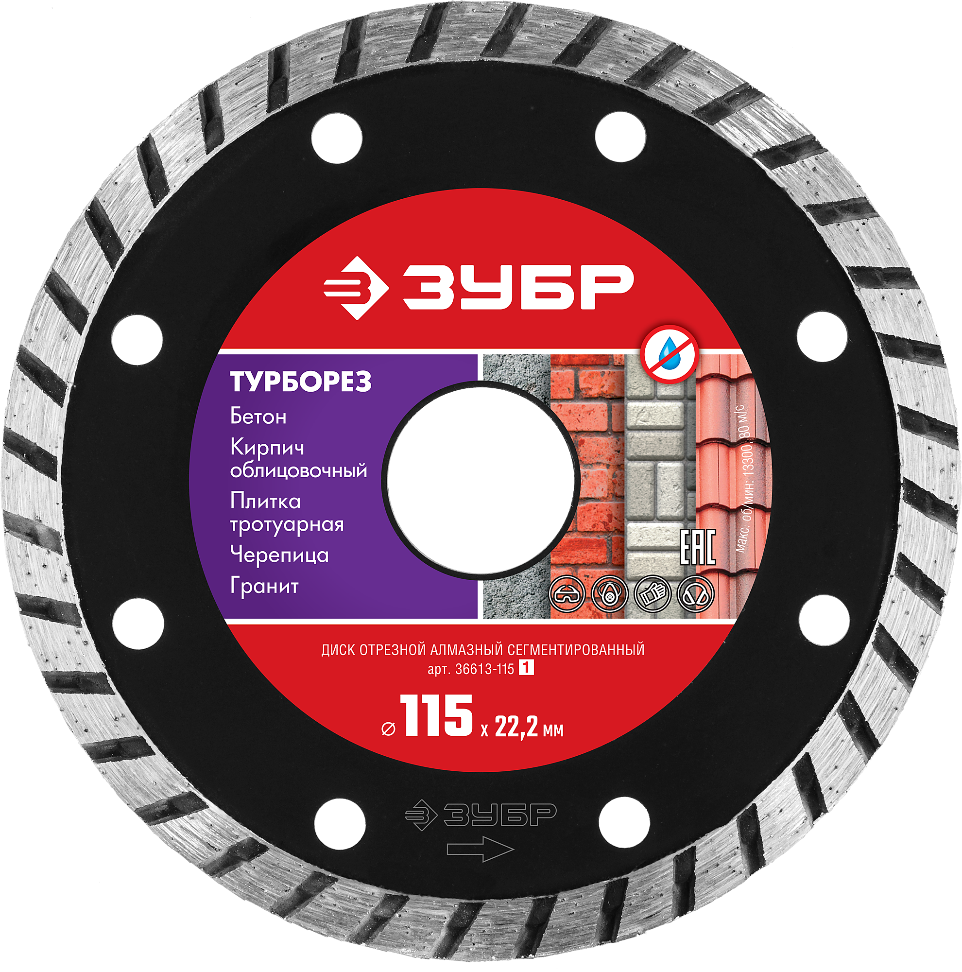 Резка бетона, бордюрного камня, облицовочного кирпича, тротуарной плитки и других строительных материалов без принудительного охлаждения. Применяется на УШМ. Оригинальная сегментированная форма режущей кромки позволяет быстро и эффективно осуществлять необходимые резы в обрабатываемом материале. Высококачественные синтетические алмазы. Оптимально подобранные компоненты металлической связки гарантируют продолжительный рабочий ресурс диска при работе даже с самыми сложными в обработке материалами. Сегментированная режущая кромка обеспечивает эффективную работу без принудительного охлаждения.