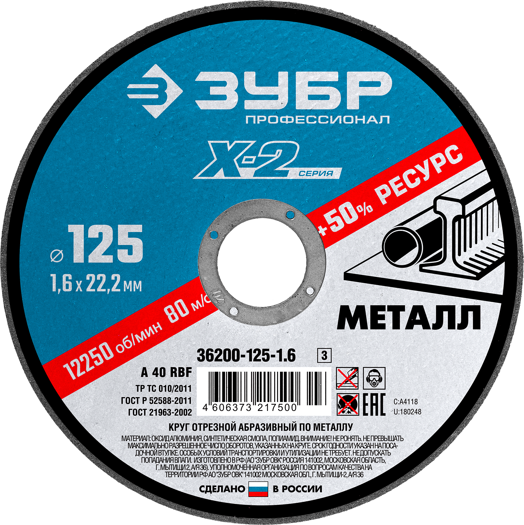 Диск отрезной 125х1,6х22мм Зубр «Х-2»