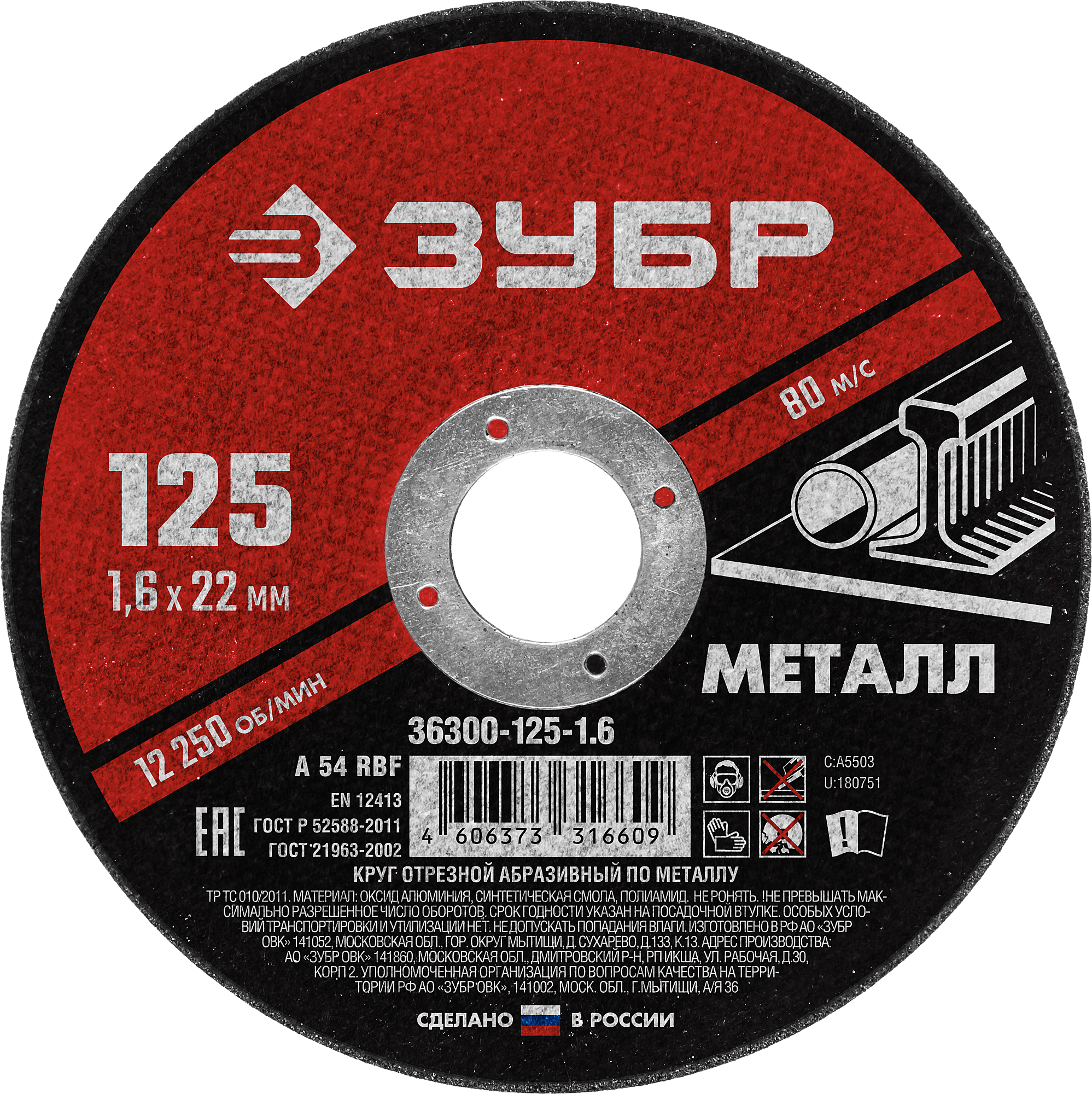 Диск отрезной 125х1,6х22мм Зубр Мастер