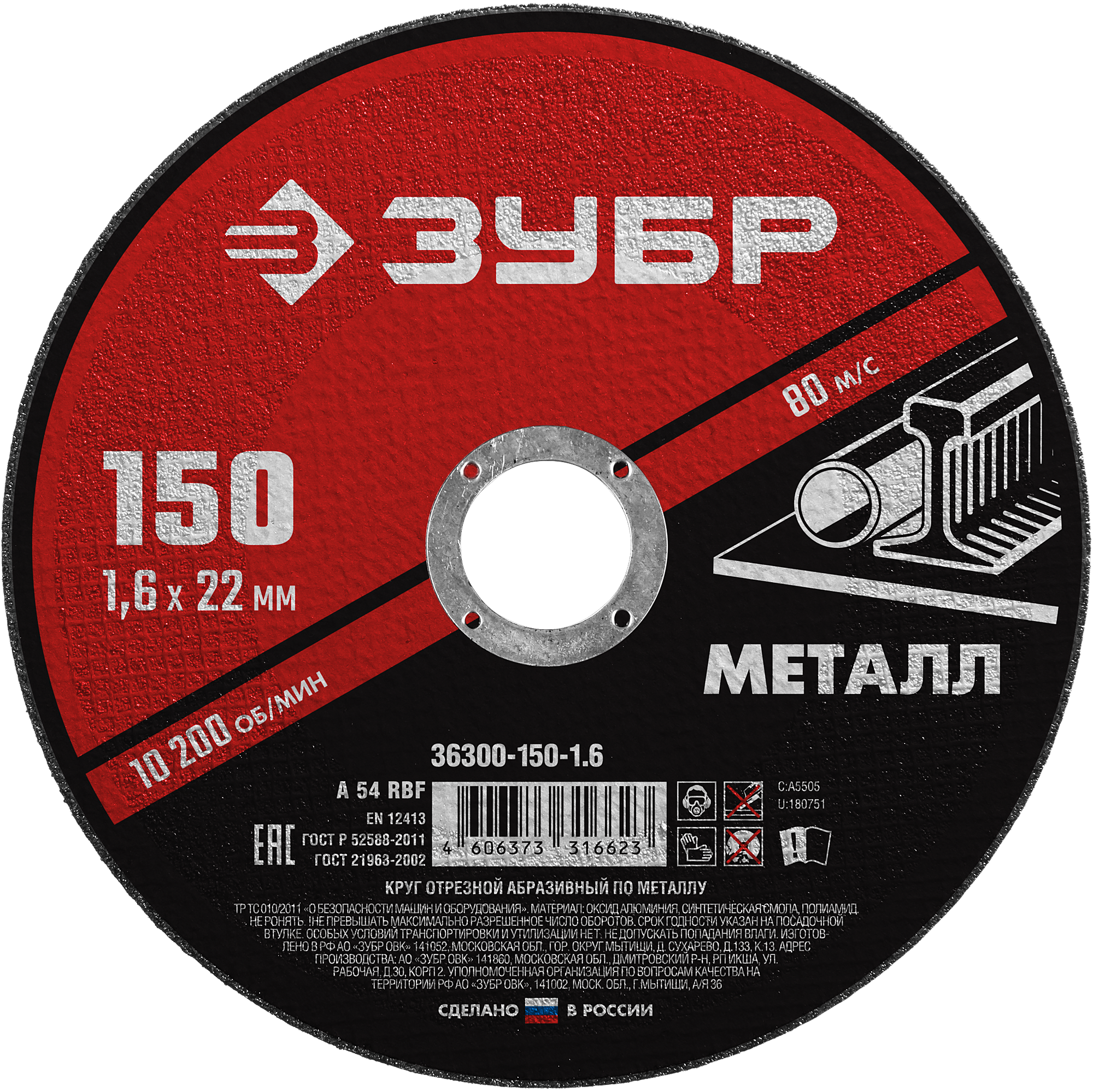 Диск отрезной 150х1,6х22мм Зубр Мастер
