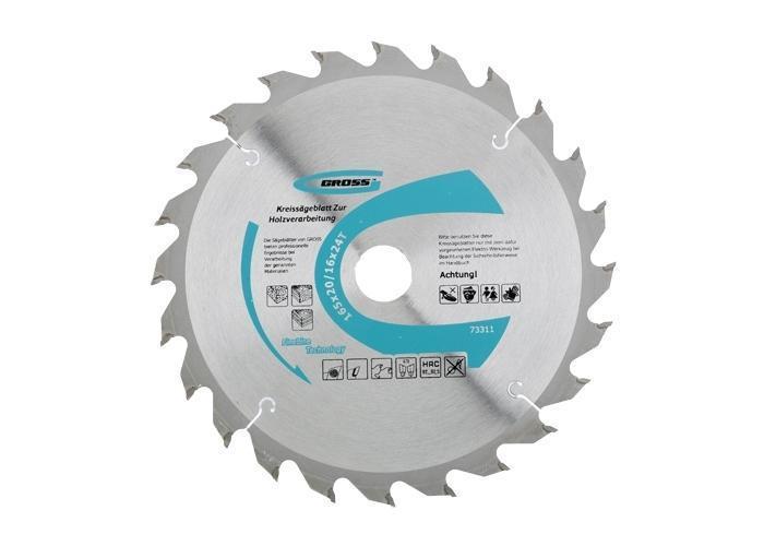 Пильный диск по дереву торговой марки GROSS предназначен для распиловки заготовок из мягких и твердых пород древесины, фанеры, ДСП. Изготовлен пильный диск из пружинной стали марки 65MN. Размеры диска 165 х 20 мм, с возможностью использовать переходник диаметром 16 мм. Форма зуба (ATB) с положительным углом наклона обеспечивает эффективную распиловку крупных заготовок. 24 режущие пластины изготовлены из твердого сплава, произведенного компанией CERATIZIT (Люксембург), и обладают исключительной стойкостью к окислению, истиранию и разрушению. Пайка пластины к диску осуществляется припоем с высоким содержанием серебра, гарантируя тем самым высокую надежность крепления.