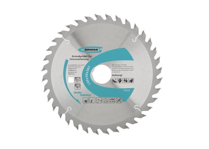 Пильный диск по дереву торговой марки GROSS предназначен для распиловки заготовок из мягких и твердых пород древесины, фанеры, ДСП. Изготовлен пильный диск из пружинной стали марки 65MN. Размеры диска 190 х 30 мм. Форма зуба (ATB) с положительным углом наклона обеспечивает эффективную распиловку крупных заготовок. 36 режущих пластин изготовлены из твердого сплава, произведенного компанией CERATIZIT (Люксембург), и обладают исключительной стойкостью к окислению, истиранию и разрушению. Пайка пластины к диску осуществляется припоем с высоким содержанием серебра, гарантируя тем самым высокую надежность крепления.