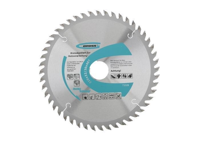 Пильный диск по дереву торговой марки GROSS предназначен для распиловки заготовок из мягких и твердых пород древесины, фанеры, ДСП. Изготовлен пильный диск из пружинной стали марки 65MN. Размеры диска 210 х 32 мм, с возможностью использовать переходник диаметром 30 мм. Форма зуба (ATB) с положительным углом наклона обеспечивает эффективную распиловку крупных заготовок. 48 режущих пластин изготовлены из твердого сплава, произведенного компанией CERATIZIT (Люксембург), и обладают исключительной стойкостью к окислению, истиранию и разрушению. Пайка пластины к диску осуществляется припоем с высоким содержанием серебра, гарантируя тем самым высокую надежность крепления.