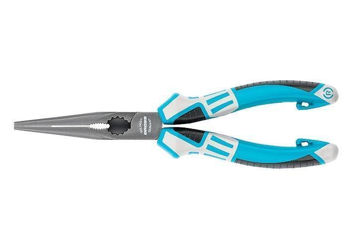 Длинногубцы торговой марки GROSS предназначены для проведения слесарных и электромонтажных работ (точечного захвата проволоки, металлической жилы, прутка, кусков металла пр.). Грани у основания губок длинногубцев позволяют использовать инструмент как гаечный ключ М6–М8. Нижние части рукояток оснащены дополнительными упорами, на которые можно установить пружину для автоматического разжима либо скобу с подвесом. Длинногубцы общей длиной 205 мм изготовлены из высококачественной конструкционной стали твердостью 53 HRC. На металлическую основу инструмента нанесено специальное антикоррозийное покрытие Titan finish. Диэлектрические трехкомпонентные рукоятки позволяют использовать инструмент под напряжением до 1000 В, что соответствует стандартам VDE, IEC 60900. Подвесная карта обеспечивает удобное размещение на стенде. На длинногубцы распространяется пятилетняя гарантия.