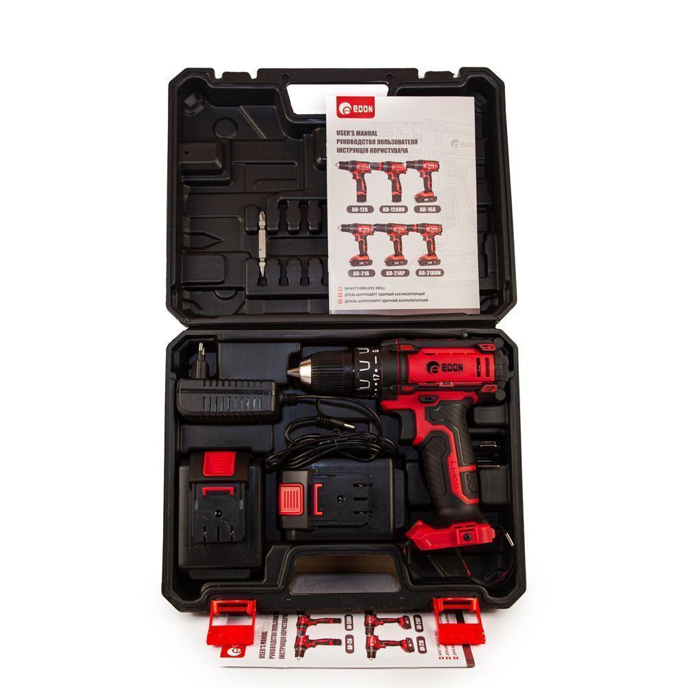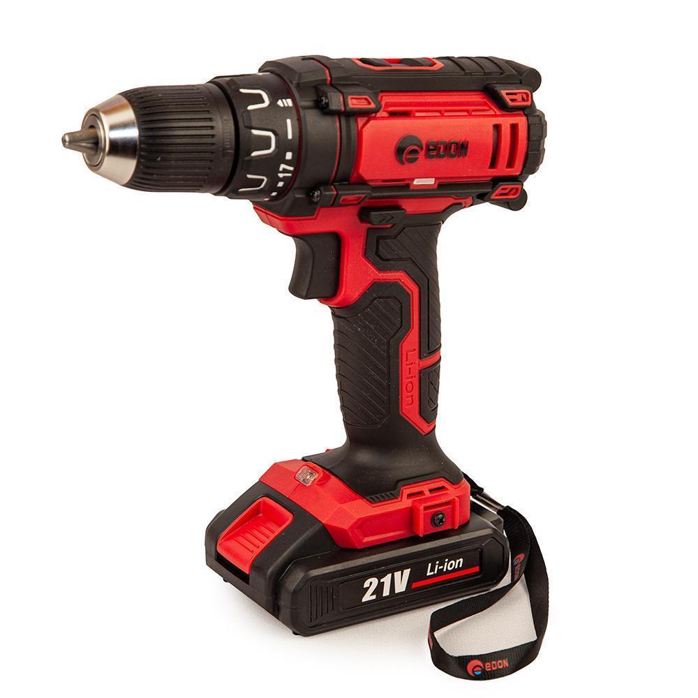 Дрель-шуруповерт аккумуляторная безударная Edon AD-21A, предназначена для закручивания, отворачивания винтов и шурупов, сверления отверстий в различных конструкционных материалах (в том числе металле, дереве, пластмассе и т.п.)