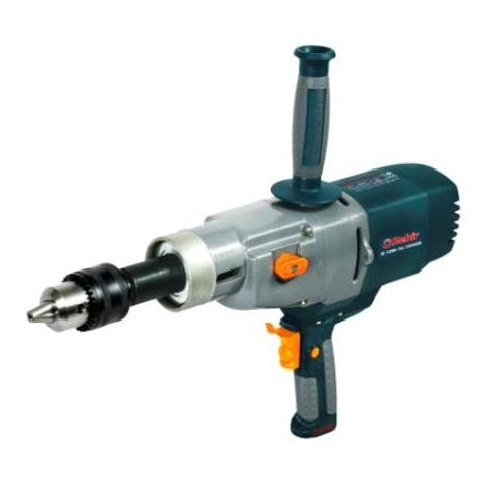 Машина имеет алюминиевый корпус редуктора, повышающий срок службы, две скорости вращения с механическим переключателем, боковую рукоятку с мягким покрытием для поглощения вибрации, классический 3-х кулачковый патрон.