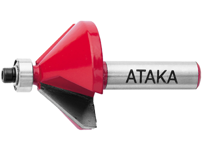 Ассортимент фрез Атака включает в себя большое количество концевых фрез различных конфигураций и предназначения, применяемых как на ручных фрезах, так и на фрезерных станках. Фрезы Атака изготовлены из высококачественной быстрорежущей стали, отличаются повышенным ресурсом, высокой скоростью обработки и точностью обрабатываемой поверхности. Используются для обработки дерева и производных древесных материалов: ДСП, МДФ, фанера, ламинат. Фреза Атака 131320 кромочная конусная 45 Кромочные конусные фрезы применяются для задания скошенного профиля кромки дерева. Данная фреза задает угол скоса 45 градусов. По сравнению со строго перпендикулярной кромкой, увеличивается площадь при склеивании деталей со скошенным профилем.