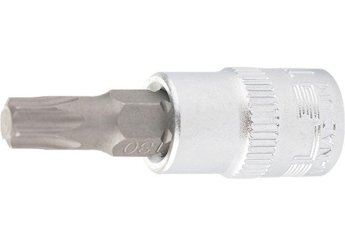 Сменная торцевая головка повышенной износостойкости с битой-вставкой. Головка изготовлена из хромованадиевой стали, бита — из стали S2. Матовое хромоникелевое покрытие. Головка имеет посадочное место для присоединительного квадрата 1/4. Предназначена для эффективного монтажа болтовых соединений с внутренним профилем TORX.