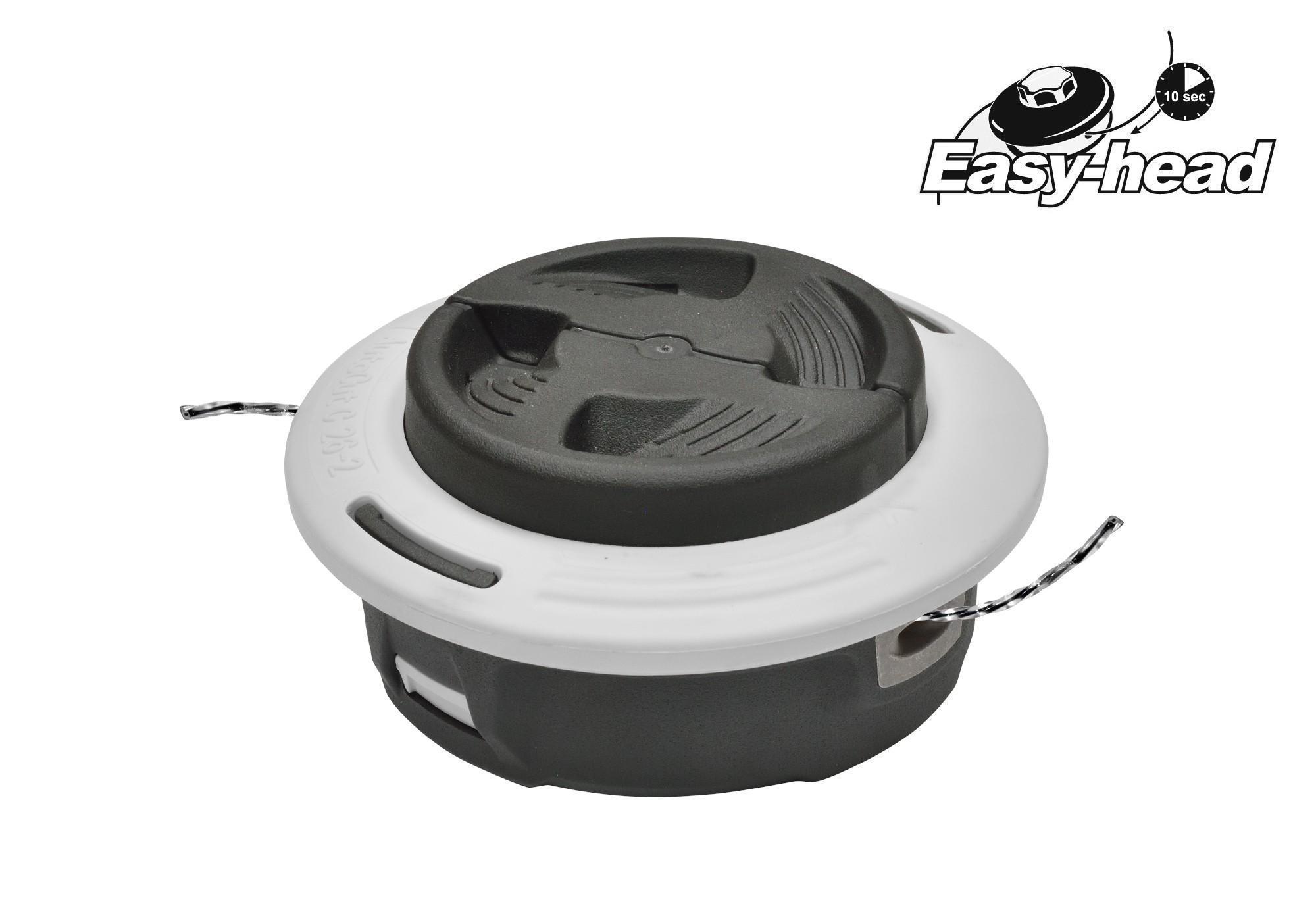Конструкция картриджа для лески с системой EASY-HEAD обеспечивает быструю и простую замену лески в три этапа: 1. Совместить метки на картридже 2. Продернуть леску сквозь картридж 3. Закрутить барабан картриджа