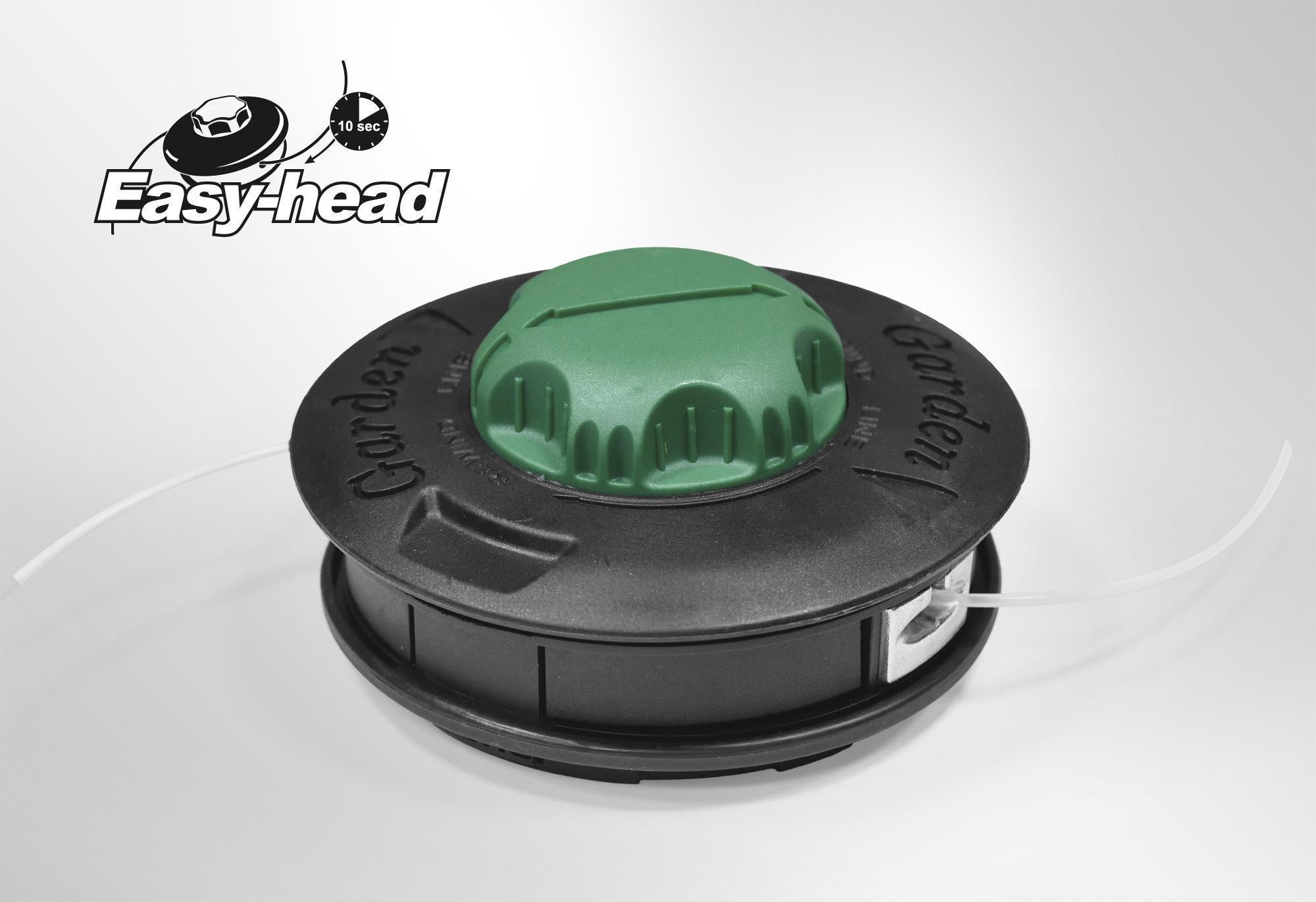 Конструкция картриджа для лески с системой EASY-HEAD обеспечивает быструю и простую замену лески в три этапа: 1. Совместить метки на картридже 2. Продернуть леску сквозь картридж 3. Закрутить барабан картриджа