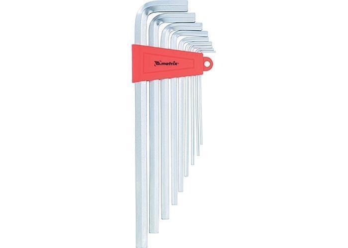 Набор длинных имбусовых ключей торговой марки MATRIX предназначен для работы с крепежом, оснащенным шлицом HEX (шестигранником). Ключи имеют Г-образную форму, изготовлены из высококачественной хромованадиевой стали твердостью 50 HRС. Сатинированное покрытие инструмента позволяет надежно удерживать ключи при высоком крутящем моменте. В состав набора входят ключи размером 2, 2.5, 3, 4, 5, 6, 8, 10 и 12 мм. Ключи крепятся на клипсе удобной для хранения и транспортировки.