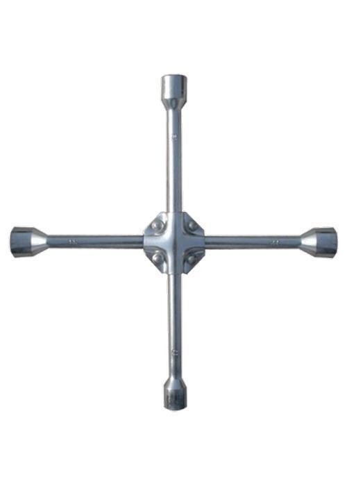 Ключ-крест баллонный крестообразный изготавливается из углеродистой стали. Твердость материала рабочих частей ключа 41 HRс, что соответствует требованиям ГОСТа. Защитное покрытие выполнено из цинка. Прутья ключа надежно приварены друг к другу под углом 90 градусов. Ключ арт. 14244 имеет 4 несъемные торцевые головки с шестигранным зевом. Ключ арт. 14245 имеет 3 несъемные торцевые головки с 6-гранным зевом и присоединительный квадрат 1 2. Утолщенный диаметр прута (16 мм) и специальные стальные накладки, установленные в месте сварки прутьев, повышают прочностные характеристики ключей и срок их службы. Ключ применяется для установки и демонтажа а м колес.
