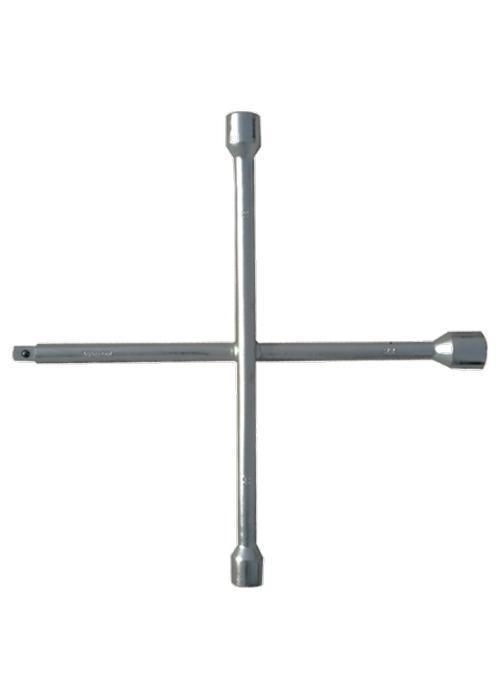Ключ-крест баллонный крестообразный изготавливается из углеродистой стали. Твердость материала рабочих частей ключа 41 HRс, что соответствует требованиям ГОСТа. Защитное покрытие выполнено из цинка. Прутья ключа надежно приварены друг к другу под углом 90 градусов. Ключ имеет 4 несъемные торцевые головки с 6-гранным зевом. Применяется для установки и демонтажа а м колес.