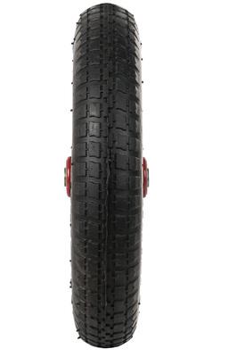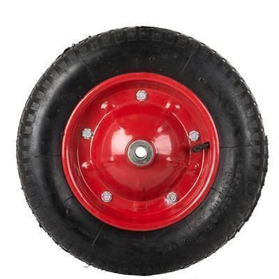 Колесо пневматическое с камерой диаметром 360 мм. Диск стальной неразборный толщиной 0,7 мм диаметром 230 мм, имеет порошковую окраску. Внутренний диаметр подшипника 16 мм (посадочный размер). Покрышка двухслойная с протектором. Точечная сварка половинок по всей окружности. Края диска закругленные. Два стальных шариковых подшипника. Колесо арт. 68940 подходит для тачек 68910, 68915; колесо арт. 68943 – для 68922.