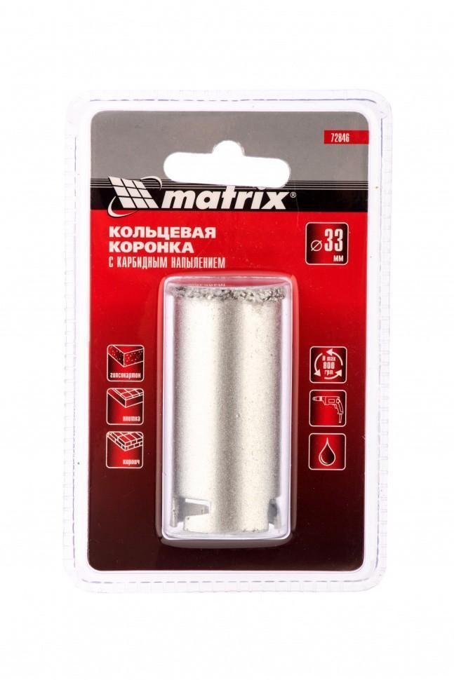 Кольцевая коронка с карбидным напылением Matrix используется в качестве сменного режущего элемента на дрелях и перфораторах. Она предназначена для сверления отверстий в керамической плитке, ячеистом бетоне, пенобетоне, газосиликате, кирпиче. Коронка станет незаменимым инструментом при монтаже проводки в доме.