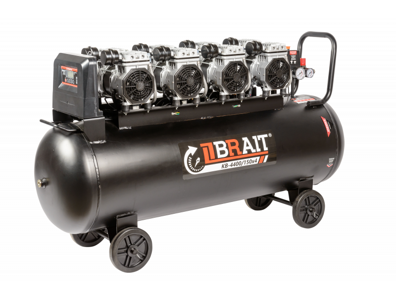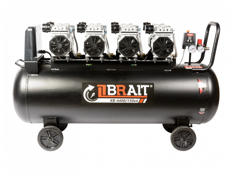 Воздушный компрессор BRAIT КВ-4400/150Х4 используется для производства сжатого воздуха в большом объеме. Конструкция включает в себя ресивер. Это позволяет воспользоваться запасом сжатого воздуха и избежать кратковременных включений двигателя. Такая система существенно увеличивает ресурс рабочей головки, снижает процент пиковых нагрузок на двигатель. Дополнительно имеется защита от конденсата — избыток влаги можно спустить из ресивера, что снижает вредное влияние коррозии на металлические компоненты. Режим работы компрессора повторно-кратковременный, с продолжительностью включения (ПВ) до 60%, при продолжительности одного цикла от 6 до 10 мин. Регулирование производительности после пуска компрессора – автоматическое.