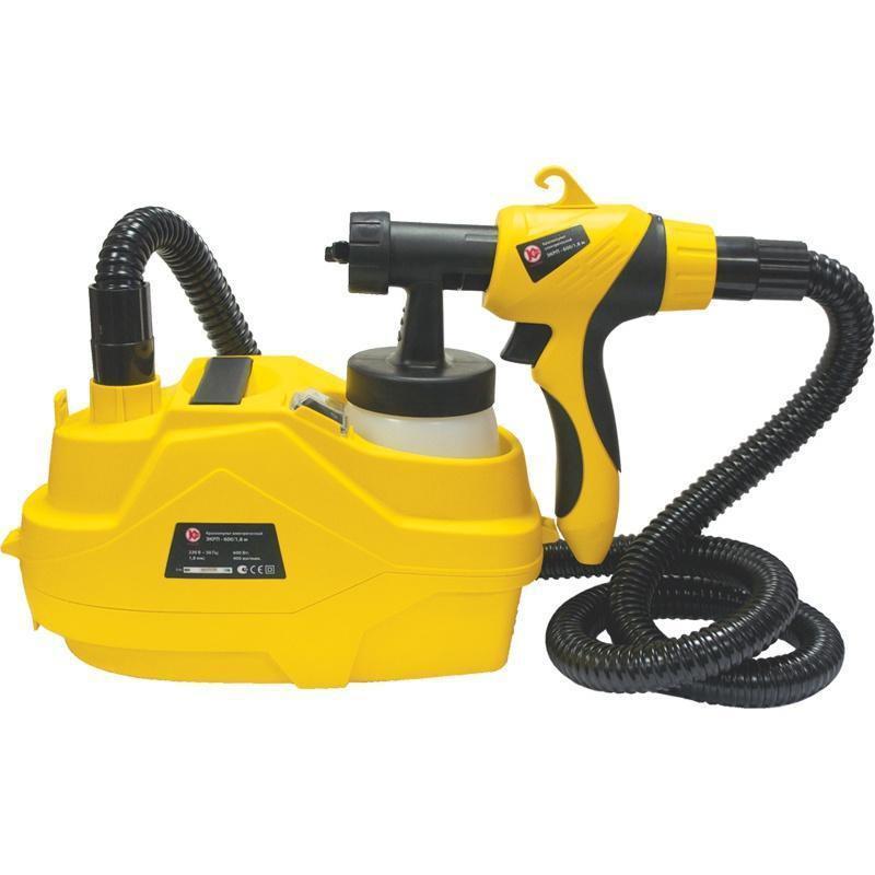 Краскораспылитель ручной электрический Калибр ЭКРП-600/1,8м предназначен для распыления лакокрасочных материалов и жидкостей без примесей абразивных материалов в бытовых условиях. Краскораспылитель выполнен по системе распыления HVLP (большой объём, низкое давление). Применение этой системы способствует: увеличению производительности, экономии расходуемого материала, низким потерям на туманообразование и «отбой» краски от поверхности, возможности окраски поверхности любой конфигурации из любого материала. Разнесённые компрессорный блок и краскораспылитель снижают вес в руках оператора. Гофрированный шланг длиной 2 метра позволяет окрашивать поверхности при нахождении компрессорного блока на полу. Нижнее расположение бачка; Регулировка факела распыления; Регулировка расхода распыляемого материала.