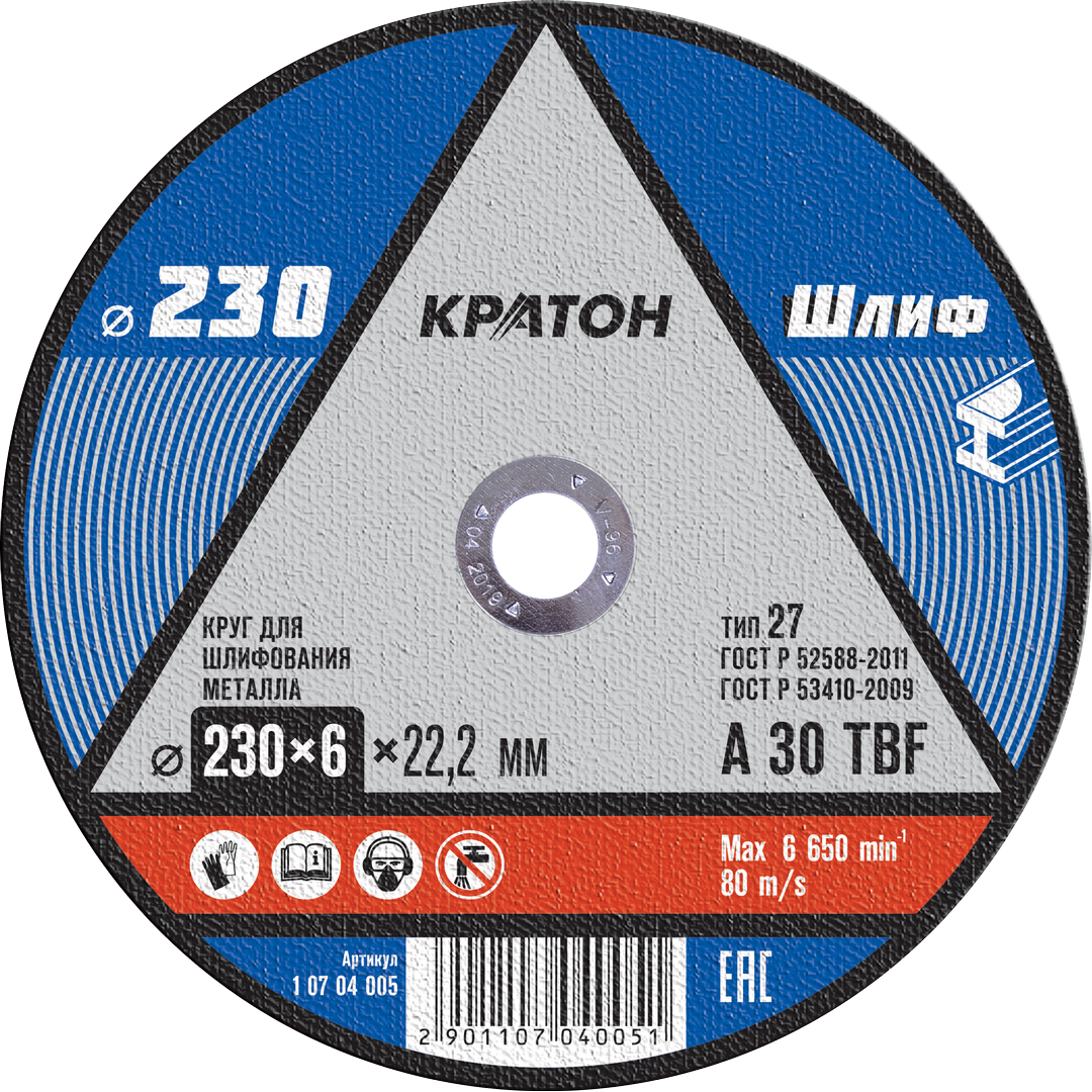 Шлифовальный круг Кратон из отовлен из твердых абразивных частиц средних размеров. Применяется для комплектации ручных УШМ. Изделие идеально подходит для угловых шлифовальных машин с диаметром посадочного шпинделя стандартного размера 22,2 мм. Внешний диаметр круга 23 см и высота 6 мм отлично подходят для крупных распилов профилей и труб из нержавейки и металла, позволяя сделать работу быстро и эффективно.