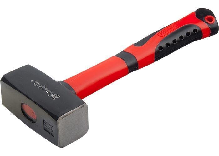 Головка кувалды кованая, покрыта черным лаком, изготовлена из стали 50. Бойку придана селективная закалка, обеспечивающая особую твердость и прочность (52 HRc). Боек слегка выпуклый и отшлифован с обеих сторон. Фибергласовая рукоятка амортизирует отдачу при ударе. Резиновое покрытие препятствует скольжению в руке и обеспечивает удобный и надежный захват.