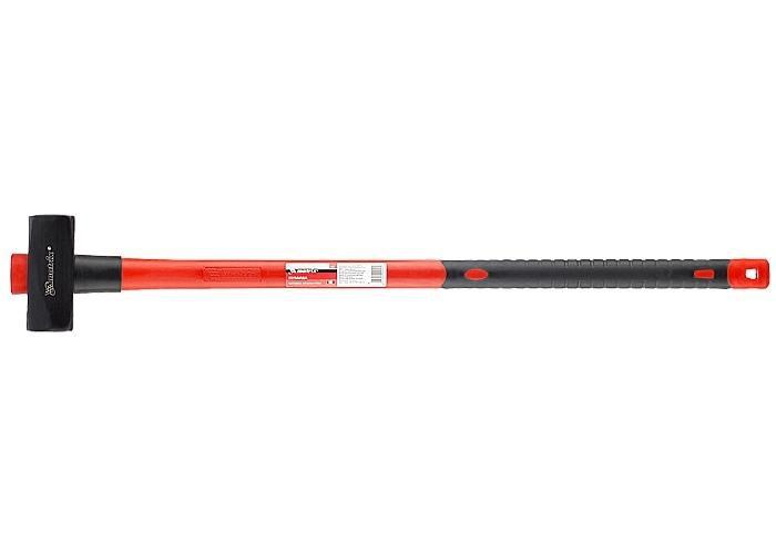 Кованая головка кувалды изготовлена из стали 50, покрыта черным лаком. Бойку придана селективная закалка, обеспечивающая особую твердость и прочность (52 HRc). Боек слегка выпуклый и отшлифован с обеих сторон. Фибергласовая рукоятка амортизирует отдачу при ударе. Резиновое покрытие препятствует скольжению в руке и обеспечивает удобный и надежный захват. Головка на рукоятку посажена «на протяг», что увеличивает надежность крепления.