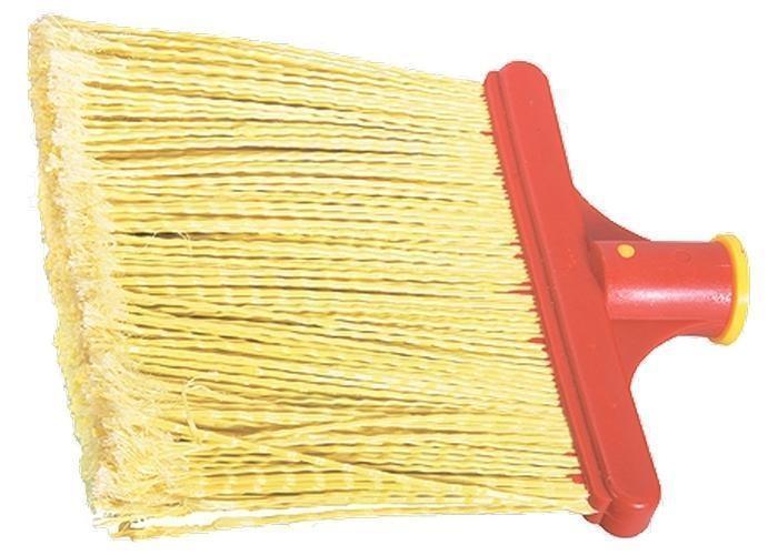 Метла-щетка плоская, ширина рабочей части 240 мм, высота 160 мм. Диаметр тулейки 25 мм. Выполнена из плотных полипропиленовых прутьев. Предназначена для хозяйственных работ внутри помещений, в том числе и производственных. Кончики ее щетинок распушены, что позволяет убирать даже самый мелкий мусор.
