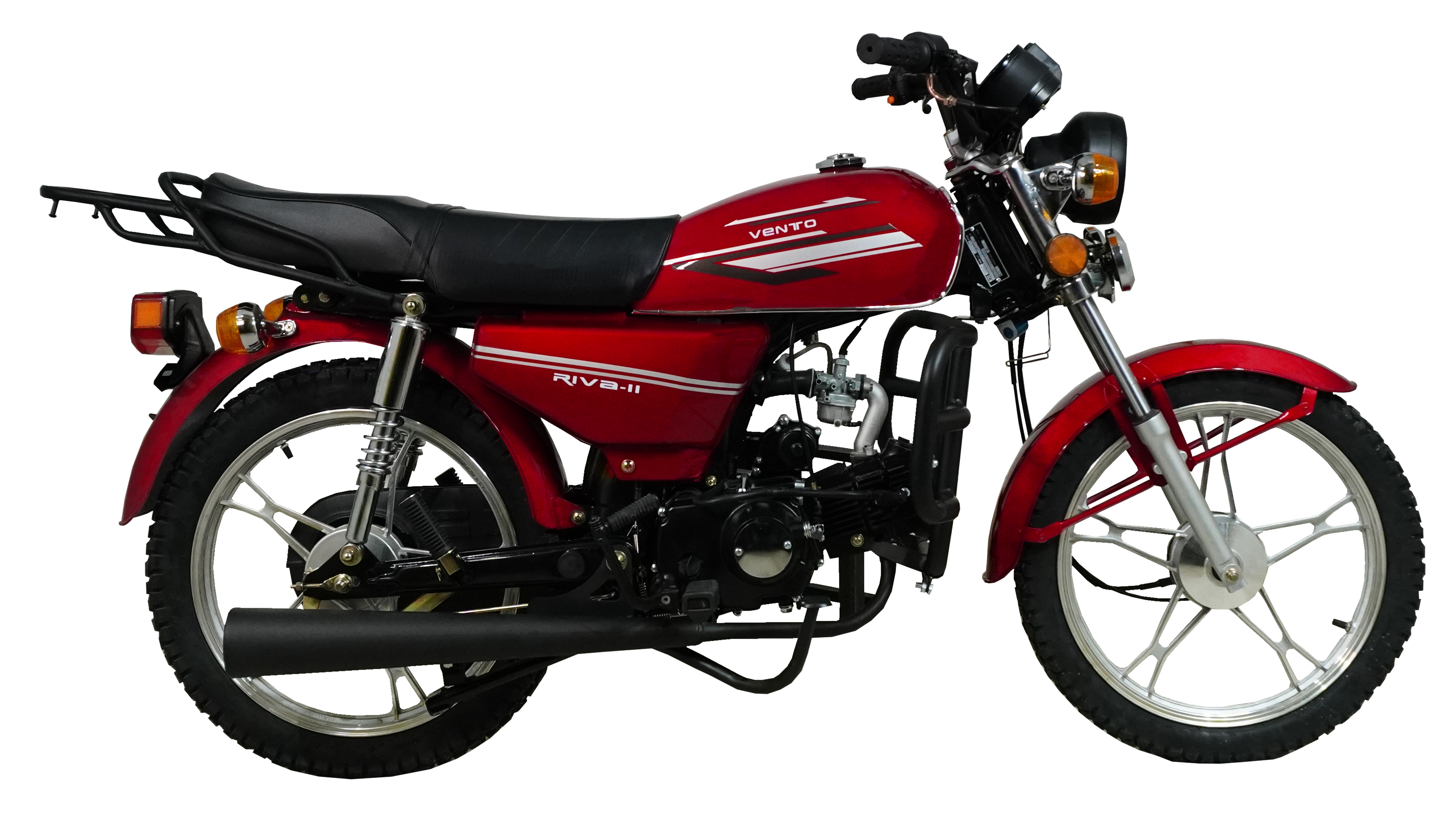 VENTO RIVA — II по низкой цене с доставкой в любой регион России! Отличный мопед, который точно порадует своего обладателя стильным дизайном, высокой мощностью и отличными показателями. До боли знакомый агрессивный дизайн с плавными чертами и несколько вариантов расцветки на выбор.Защитные дуги, полностью закрытая цепь и отсутствие пластиковых деталей позволяют использовать этот мопед в любых экстремальных условиях, снижая опасность получить травму в случае непредвиденных обстоятельств.Легкий запуск мопеда VENTO RIVA — II электростартером стал неотъемлемой частью комфорта, а наличие кик-стартера добавило уверенности при передвижении в самых отдаленных и глухих местах.