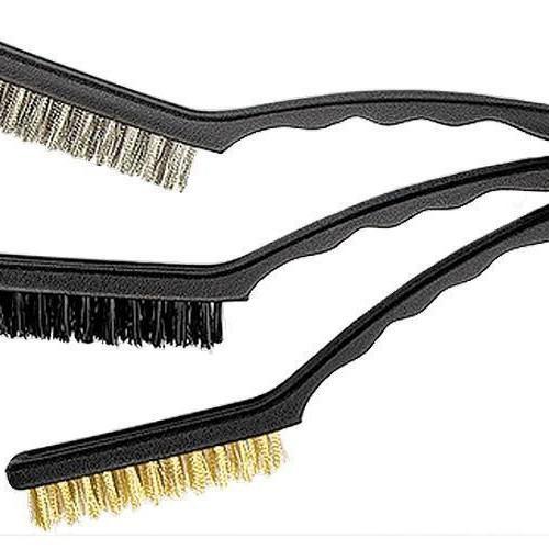 Набор металлических щеток имеет стальную щетину в пластмассовых корпусах и удобные пластмассовые ручки. Используется для грубой обработки металлических поверхностей.