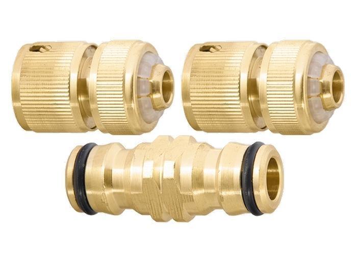 Набор соединителей для шлангов изготовлен из латуни. Применяется для наращивания длины шланга и подключения шланга к системе полива. В набор включены два соединителя, один из которых оснащен механизмом «автостоп» для автоматического прекращения подачи воды. Посадочные диаметры деталей набора совместимы со всеми адаптерами, быстросъемными соединителями, тройниками, разбрызгивателями латунной и пластиковой серии PALISAD.