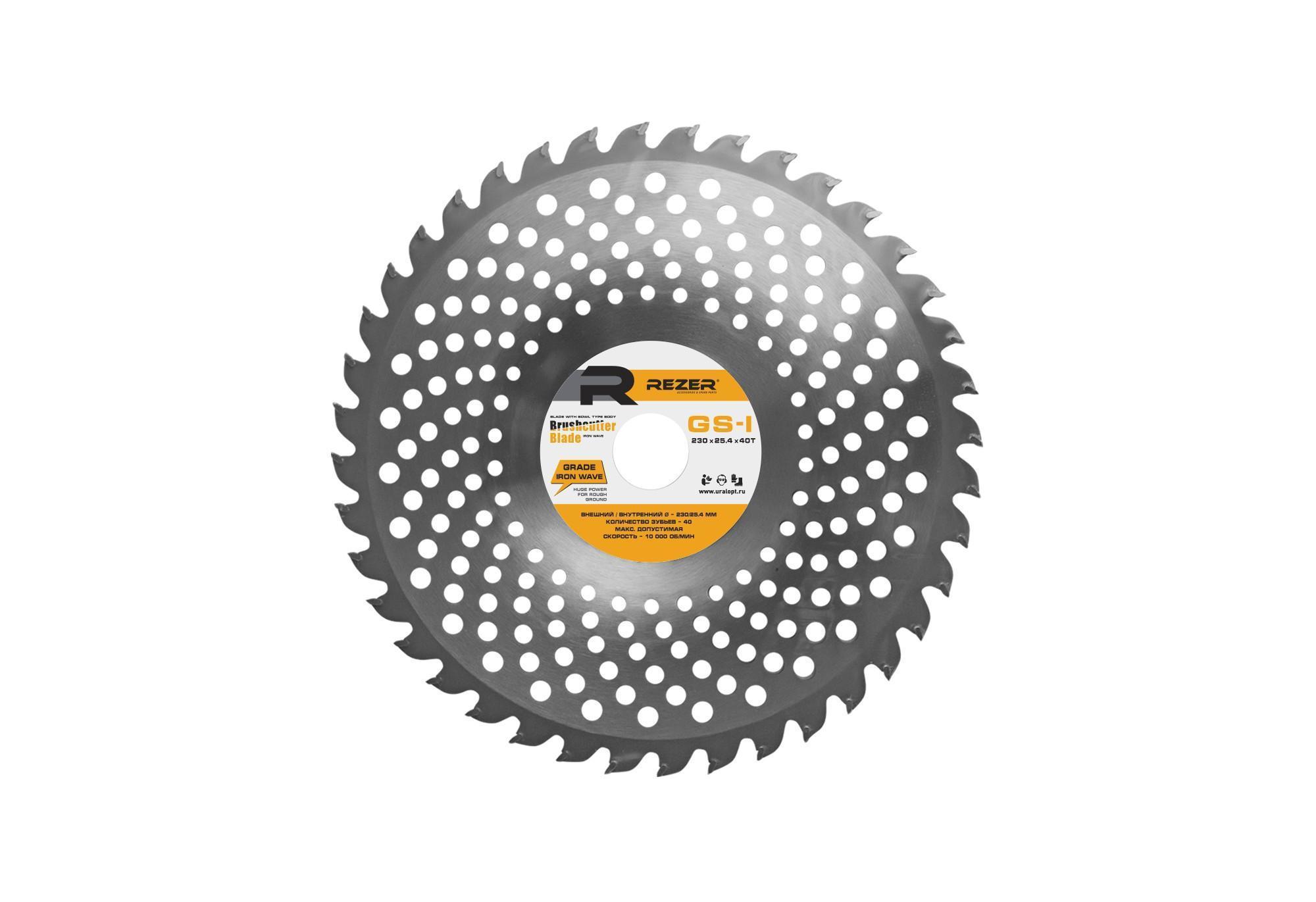 GS-I, 230mmx25.4mmx1.3mmх40Т IRON WAVE нож д/бензокосы волнообразный 40 зубьев. Ножи Rezer серии GS-I для триммеров и кусторезов предназначены для скашивания жесткой травы и мелкого кустарника.
