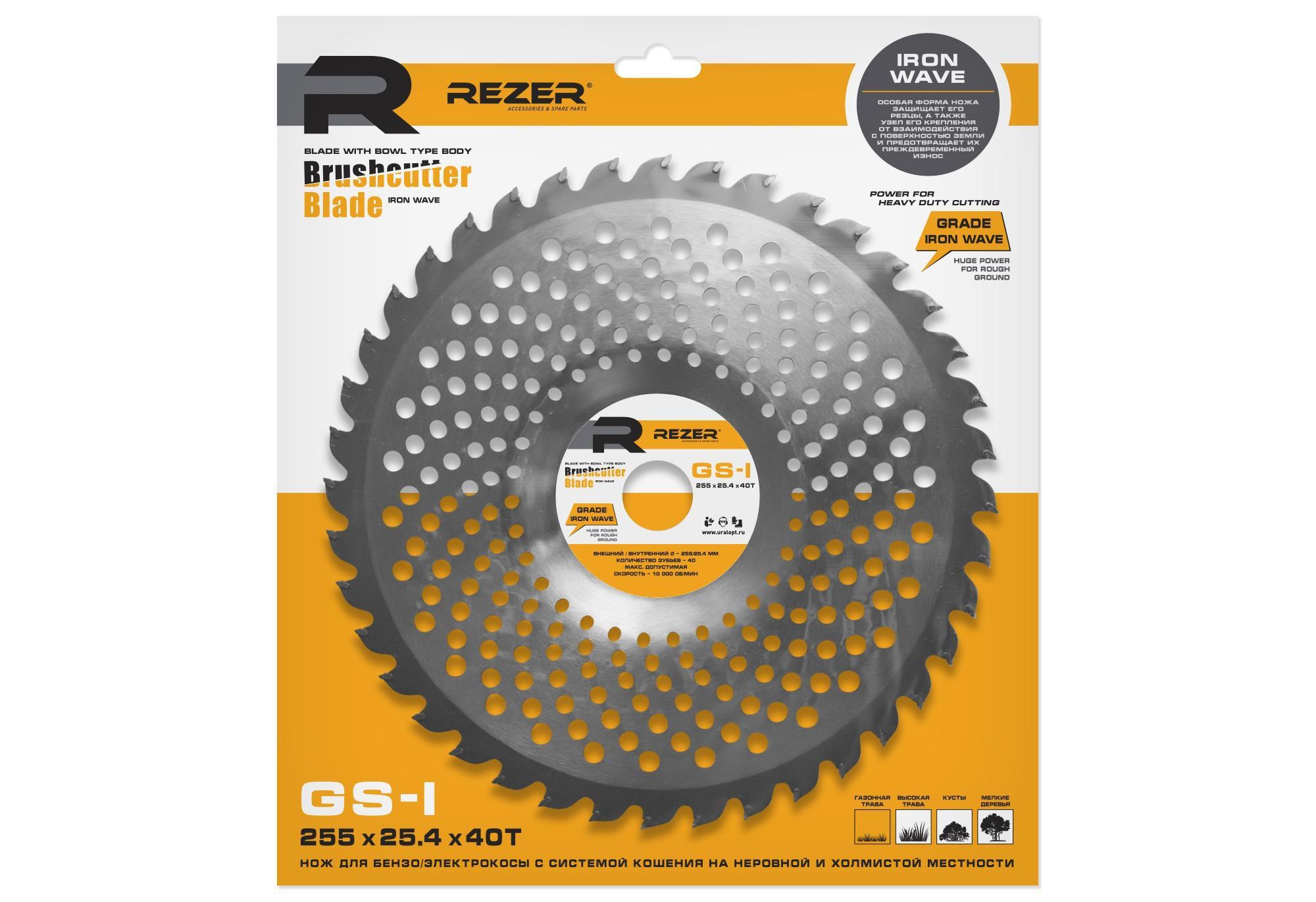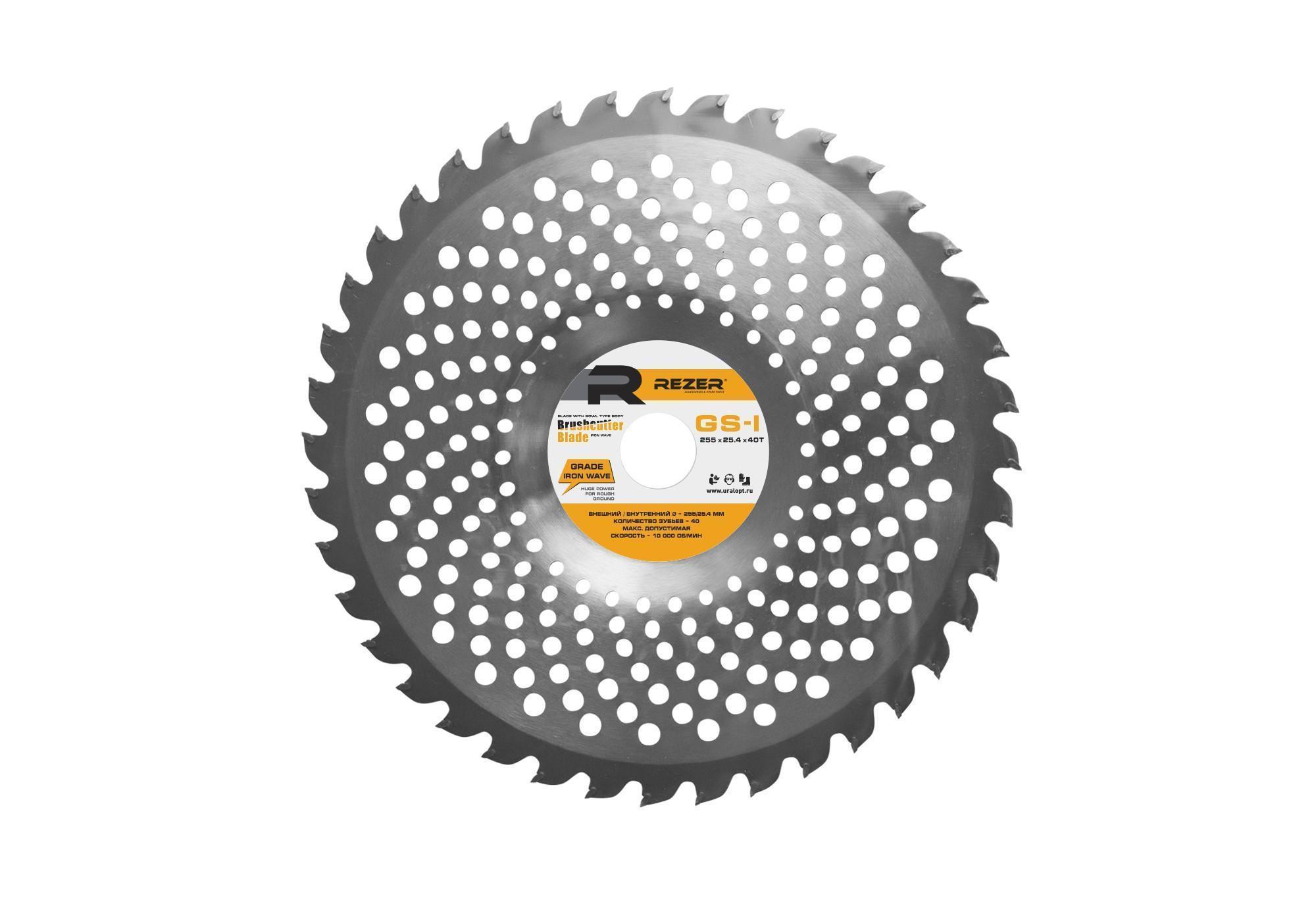GS-I, 255mmx25.4mmx1.3mmх40Т IRON WAVE нож д/бензокосы волнообразный 40 зубьев. Ножи Rezer серии GS-I для триммеров и кусторезов предназначены для скашивания жесткой травы и мелкого кустарника.