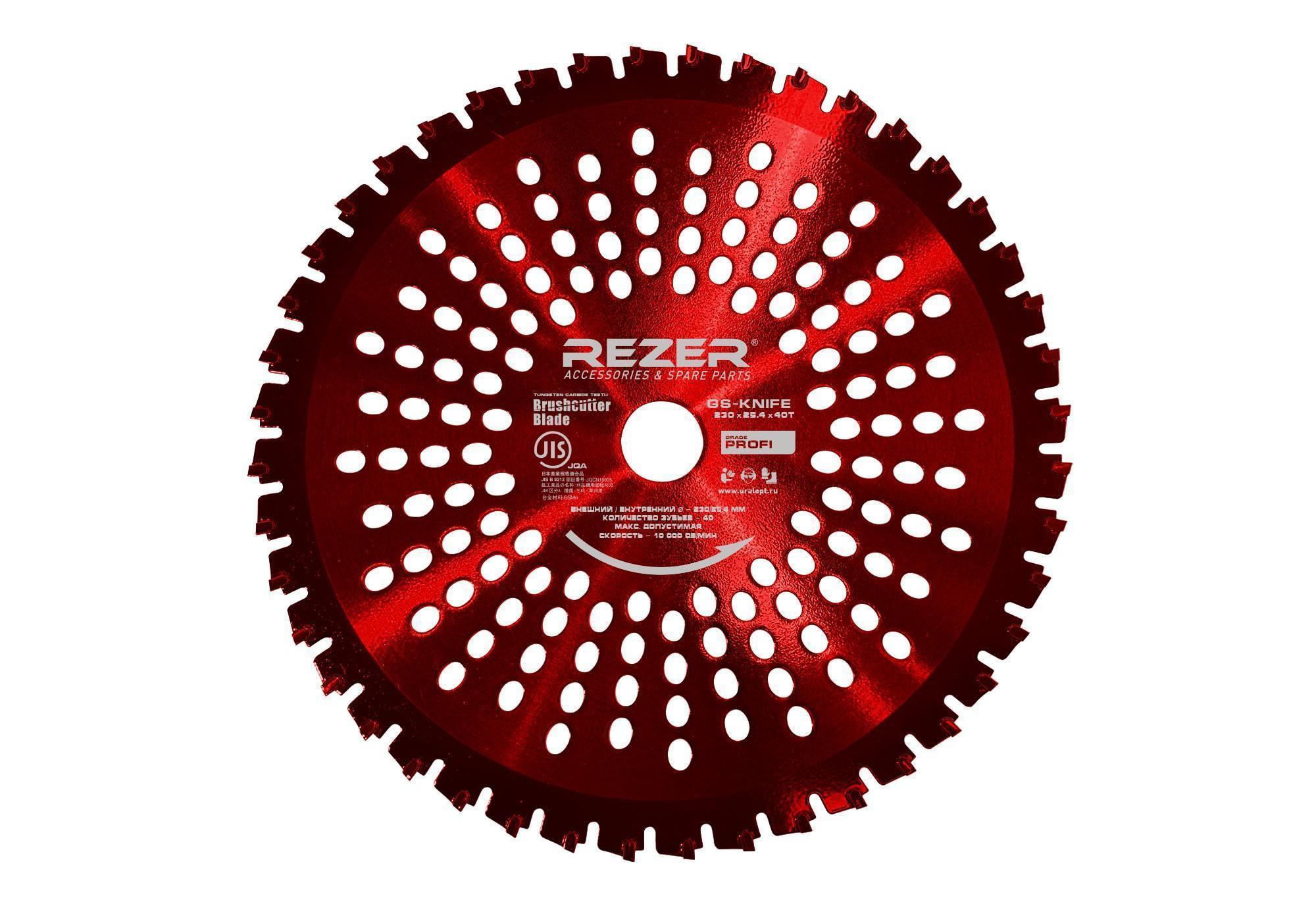 Ножи для бензо/электрокосы серии Rezer PROFI GS-Knife имеют зубья с увеличенными твердосплавными резцами, обладают наивысшей стойкостью к затуплению и износу. Специальная U-образная посадка резцов гарантирует надёжность их крепления к корпусу ножа и продолжительный срок службы. Точная балансировка и облегченная конструкция ножа снижает уровень вибрации и увеличивает ресурс редуктора косы. Нож отвечает требованиям промышленных стандартов японии (JIS)*
