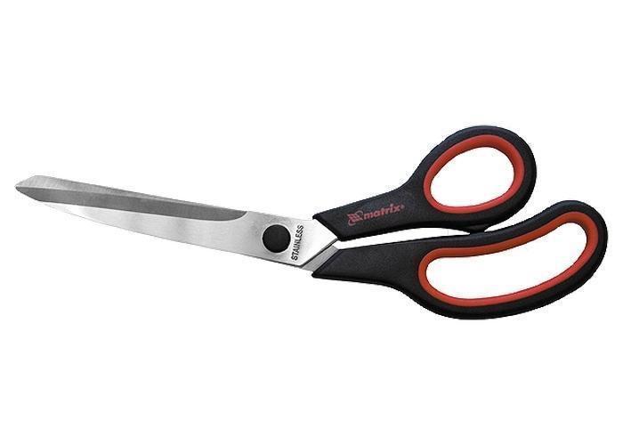 Наиболее традиционные хозяйственные ножницы с двухкомпонентными эргономичными рукоятками и остро заточенными лезвиями длиной 100 мм. Предназначены для резки бумаги, картона, различной ткани. Оригинальная геометрия расположения рукояток — их изогнутость — позволяет работать с обойными листами большой длины.