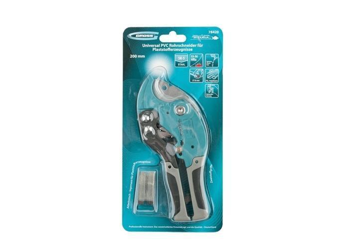 Ножницы торговой марки GROSS предназначены для резки пластиковых труб, плинтусов, профилей, резиновых шлангов и пр. диаметром до 36 мм. Специальное стальное приспособление (стол) позволяет резать и плоские изделия из вышеуказанных материалов. Корпус ножниц из сверхпрочного алюминиевого сплава, трапециевидное лезвие из высокоуглеродистой стали SK5, усовершенствованный 6-ступенчатый храповой механизм и эргономичные двухкомпонентные рукоятки позволяют отнести инструмент к профессиональной линейке.