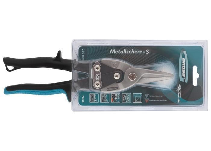 Ножницы по металлу торговой марки GROSS предназначены для точного прямого реза листового металла толщиной до 1,2 мм и нержавеющей стали толщиной до 0,7 мм. Рабочие части ножниц изготовлены из высоколегированной стали (CrMo), содержание молибдена и ванадия в ее составе придает необходимую жесткость и высокую твердость. Режущие губки проходят процесс индукционной закалки и имеют твердость 60–62 HRС. Ножницы общей длиной 250 мм оснащены эргономичными двухкомпонентными рукоятками, оригинальная форма которых минимизирует риск травм и обеспечивает удобство при длительных работах.