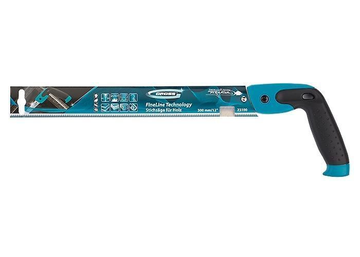 Выкружная ножовка «PIRANHA» торговой марки GROSS предназначена для столярных работ как с древесными композитными материалами (ламинатом, ДСП, ДВП, МДФ), так и с синтетическими (пенополистиролом, полиуретаном и пр). Полотно ножовки длиной 300 мм изготовлено из японской стали SK-5. Поверхность полотна обработана антикоррозийным полимерным покрытием. Зубья ножовки имеют трехгранную заточку, что позволяет работать максимально качественно и с высокой скоростью. Двухкомпонентная рукоятка ножовки изготовлена из ударопрочного пластика, а эргономичная форма делает ее комфортной для рук даже при интенсивном пилении.