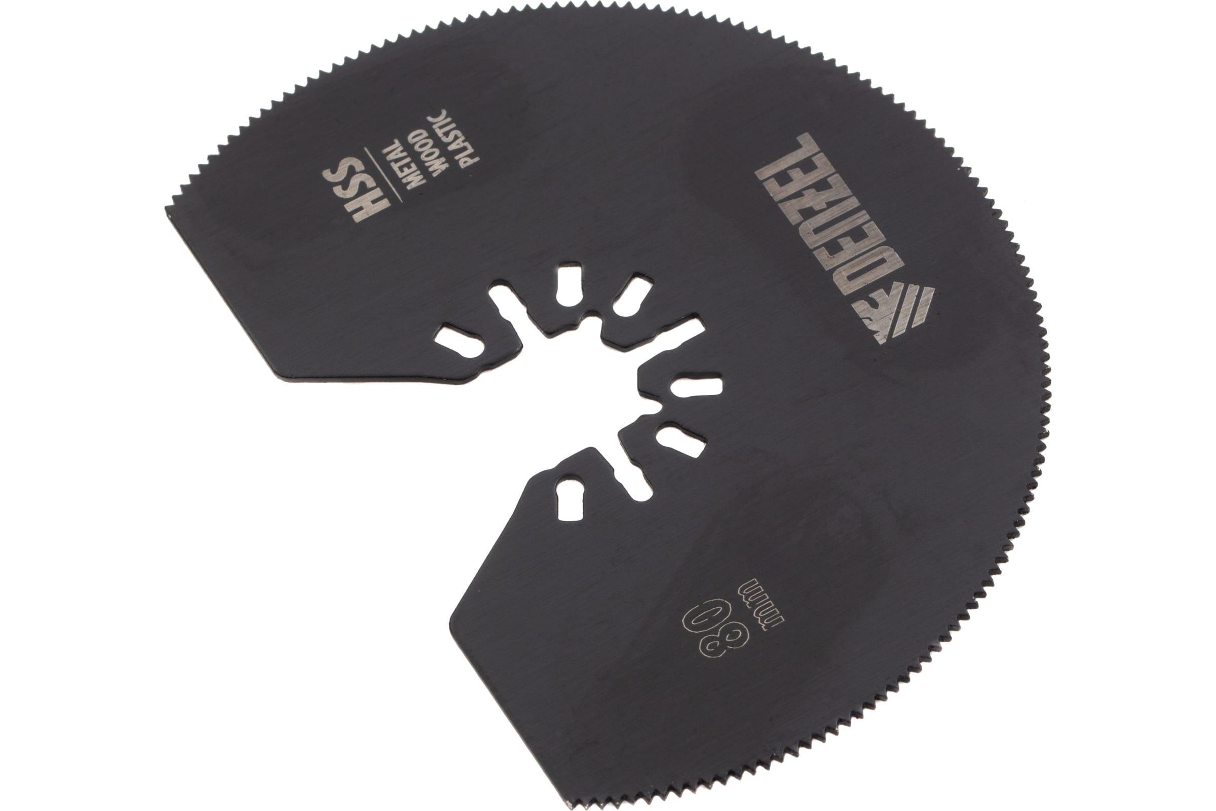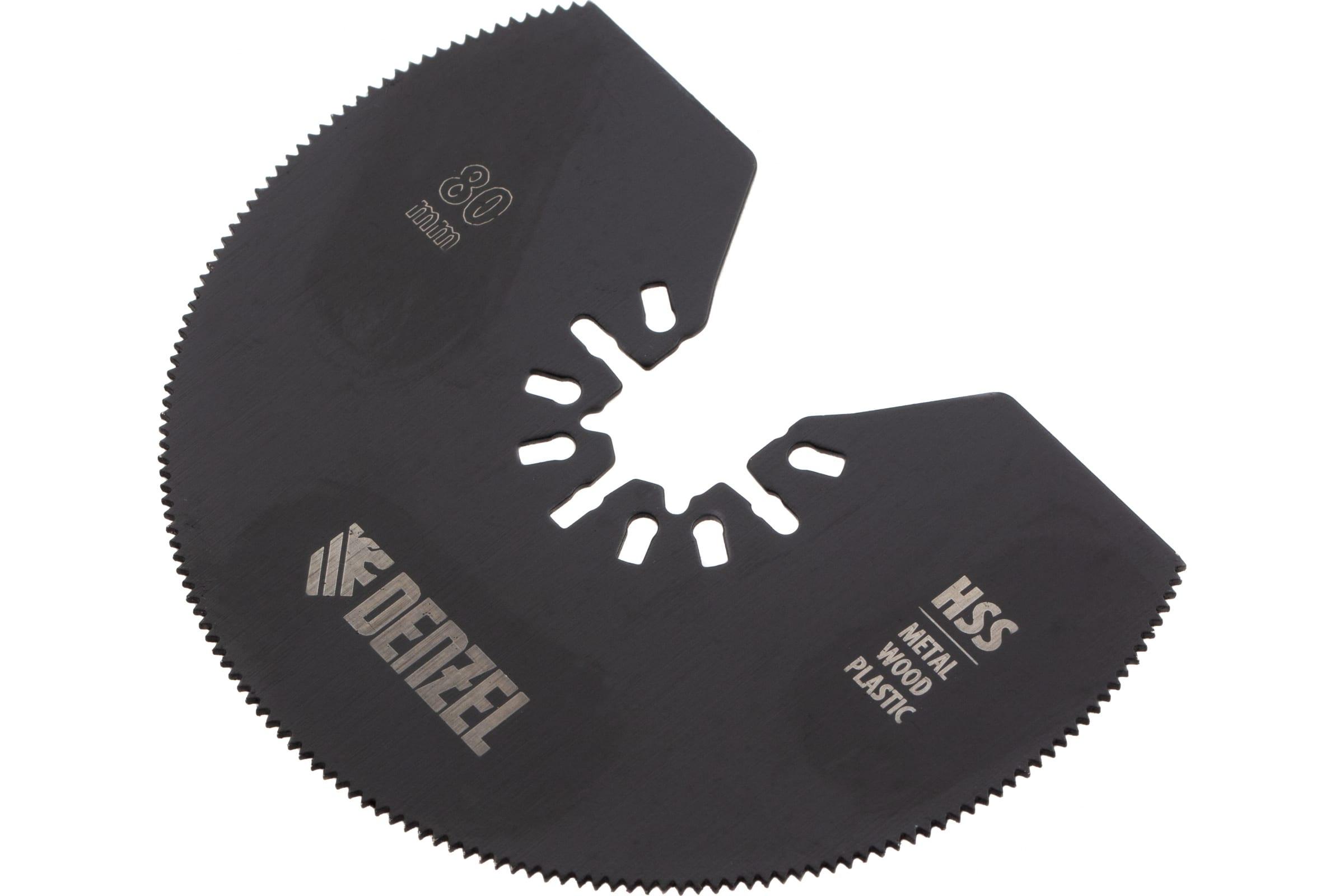 Насадка отрезная полукруг HSS по металлу и дереву 80х1.2 мм мелкий зуб для МФИ Denzel 782301 предназначена для резки стали, цветных металлов, дерева, ДСП, пластика с помощью многофункционального инструмента (МФИ).