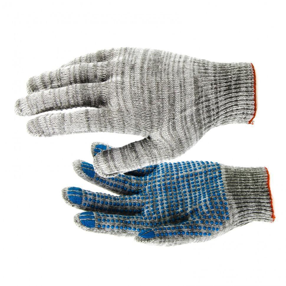 Перчатки трикотажные, ПВХ-покрытие «Точка», серый меланж, 10 класс// Россия,