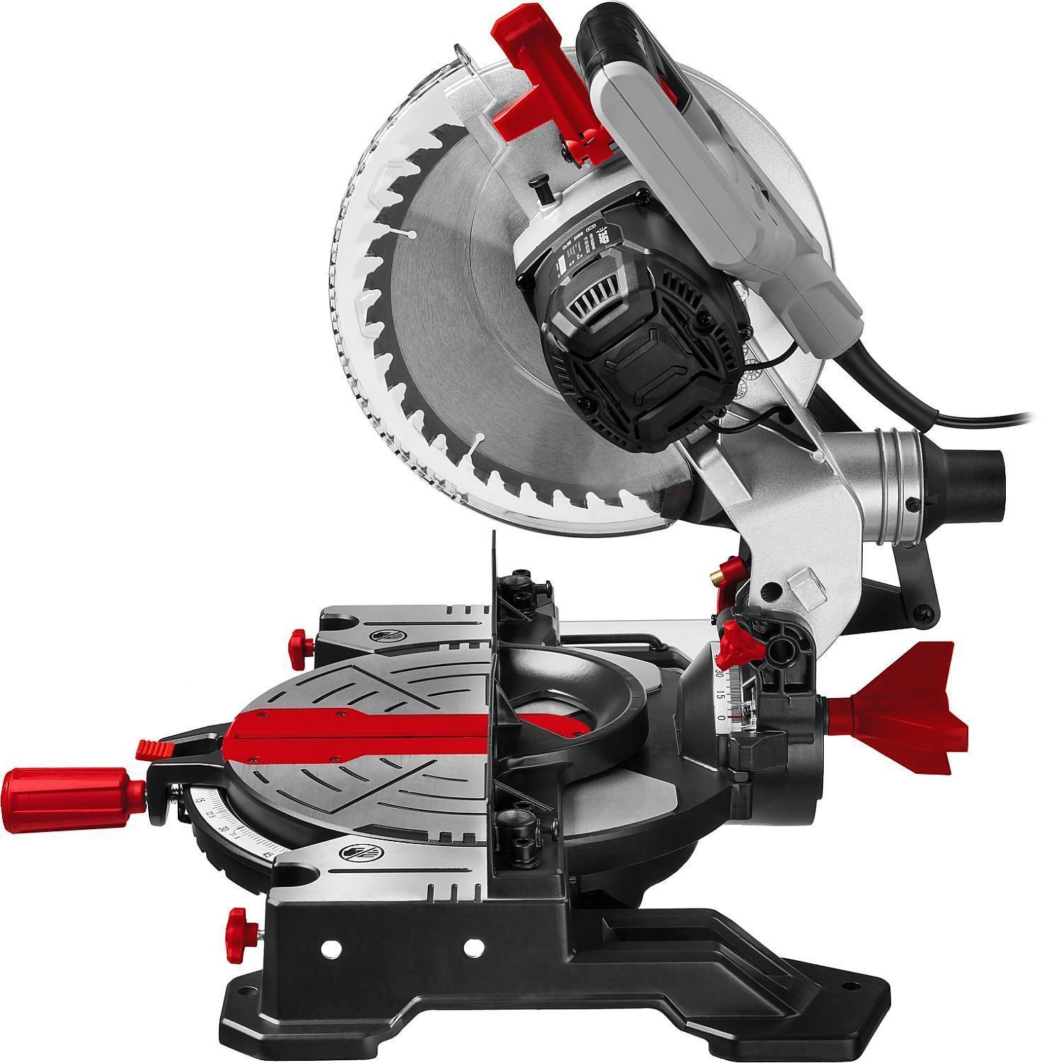 - Мощная пила для всех видов пиления: прямого, косого, под наклоном и комбинированного; — Увеличенная ширина пиления благодаря диску большого диаметра; — Лазерная направляющая для точного пиления; — Автоматически закрывающийся защитный кожух защищает оператора от травм и повреждений; — Фиксирующийся в любом положении поворотный стол и удобная регулировка наклона облегчают установку угла пиления; — Специальный сплав обеспечивает легкость и прочность конструкции и, соответственно, точность пиления; — Эффективный пылеотвод способствует более чистой работе; — Струбцина в комплекте для надежного удержания заготовки — Удлинительные опоры стола предотвращают опрокидывание отпиленной заготовки, что повышает безопасность.