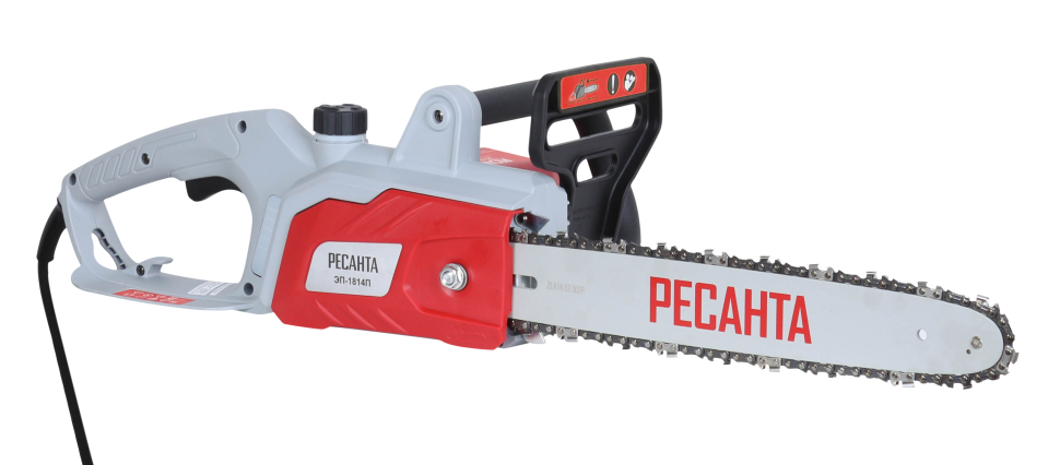 Электропила Ресанта ЭП-1814П предназначена для бытового использования: распиловка бревен, валка садовых деревьев, обрезка сучьев. Благодаря обрезиненной рукоятке держать такой агрегат в руках удобно и комфортно. Привод цепи осуществляется за счет электродвигателя, который работает от сети переменного тока 220В. Преимущества: — Надежное удержание. Удобная задняя рукоятка небольшого размера с пусковым курком жестко сидит в руке, что способствует надежному удержанию электропилы. — Безопасность. Автоматический тормоз цепи в виде щитка обеспечивает безопасность работы с электропилой, в первую очередь, защиту ваших рук. — Комфортное использование. В основании рукоятки предусмотрен специальный фиксатор для предотвращения отсоединения штекера от розетки. — Удобство обслуживания. Заменить щетки электродвигателя можно быстро и просто за счет их удобного расположения. Достаточно открутить крышку щеткодержателя. Отличительными особенностями электропилы Ресанта являются простота и удобство в работе, ведь она не требует заправки топливом и работает от сети 220В. Также стоит отметить низкий уровень шума, создаваемый при работе, а также полное отсутствие выхлопных газов. Это означает, что вы можете использовать пилу не только на улице, но и в помещении при ремонтных и строительных работах. Вы можете легко регулировать натяжение цепи с помощью винта, расположенного на корпусе справа. К характеристикам, обеспечивающим комфортное пользование инструментом, также можно отнести автоматическую смазку цепи. Чтобы вы смогли определить уровень смазки для цепи, в корпусе есть смотровое окошко с делениями. Единственная особенность — это недостаточная мобильность, ведь пользоваться инструментом можно только в непосредственной близости от розетки переменного тока 220В. Этот легко исправить, используя переноску (с кабелем подходящего сечения!) или бензогенератор Ресанта.