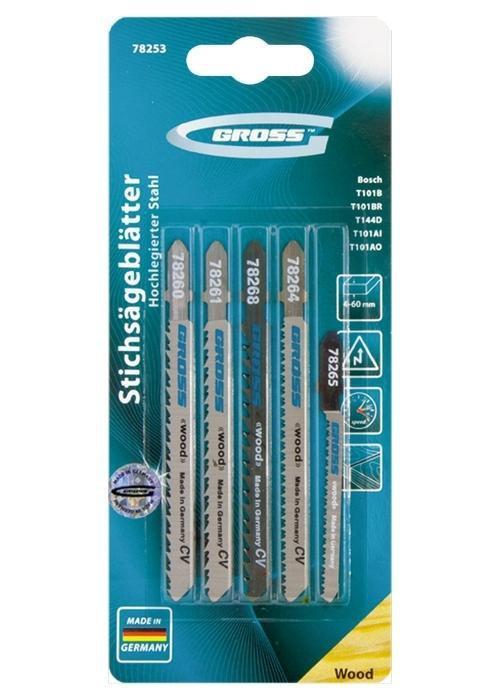 Полотна для электролобзика торговой марки GROSS изготовлены из высококачественной немецкой хромованадиевой стали и относятся к линейке профессионального инструмента. Отличительные особенности этой линейки: стойкость к изнашиванию, более высокая твердость по сравнению с обычными полотнами. При изготовлении полотен применяется лазерный раскрой профиля, процесс заточки и шлифовки полностью автоматизирован. Используются полотна в качестве режущего инструмента для распиловки изделий из твердой и мягкой древесины, фанеры, ламинированного ДВП и пластмассы. Полотна длиной 100 мм с шагом зуба 10 TPI прекрасно справляется с материалом толщиной от 4 до 60 мм. Набор упакован в жесткую термоформованную пленочную коробку (double blister).