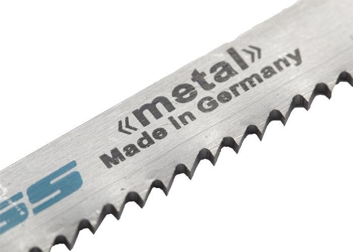 Полотно для электролобзика торговой марки GROSS изготовлено из высококачественной инструментальной немецкой стали. Предназначено полотно для распила изделий из цветных металлов, конструкционной и арматурной стали, листового железа, а также заготовок из композиционных материалов, таких как текстолит, стеклопластик пр. Полотно длиной 75 мм и толщиной 1 мм с шагом зуба 12 TPI рекомендовано для распила изделий толщиной от 2,5 до 6 мм.