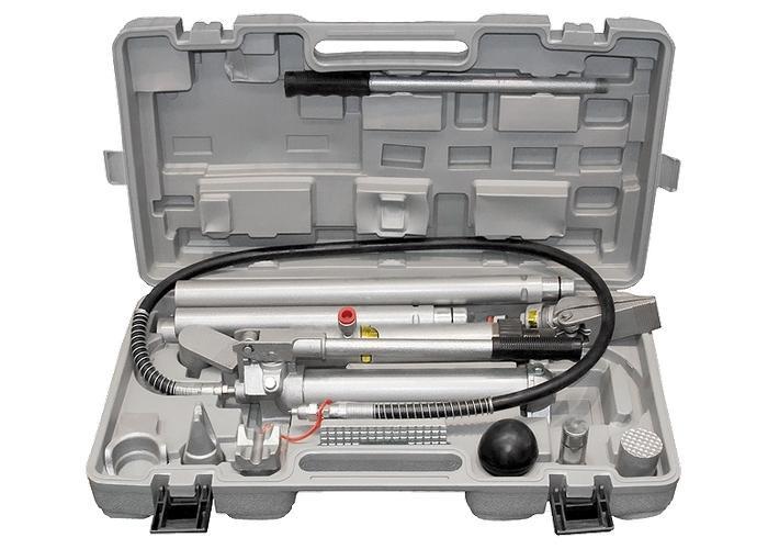 Набор гидравлических растяжек состоит из гидравлического насоса, гидравлического цилиндра, а также удлинителя и комплекта насадок. Унифицированный состав позволяет заменять его и дополнять новыми составляющими. Применяется для рихтовки кузовов автомобилей и различных металлоконструкций. В наборы 51334, 51314, 51340, 51320 входит 12 предметов и 7 сменных насадок, в 51345 – 14 предметов и 9 сменных насадок.