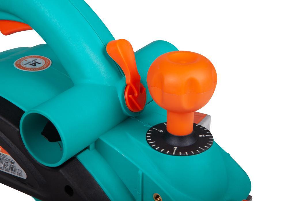 Оптимальное расположение органов управления одинаково удобно как под правую, так и под левую руку, позволяет уверенно работать рубанком и получать превосходные результаты.