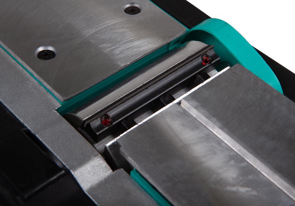 Комплект острых ножей из твердой легированной стали с функцией быстрой и простой замены обеспечивает лёгкое строгание без лишних усилий и высокого качество обработки поверхности.