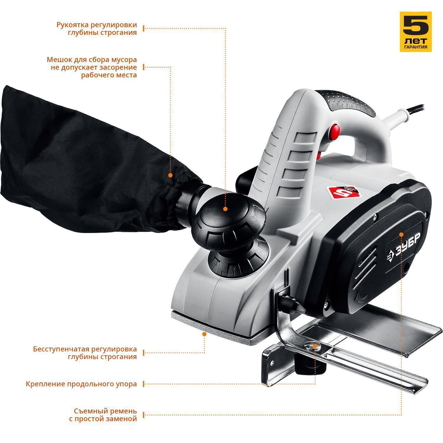 - Простая и надежная конструкция; — Ширина и глубина строгания достаточны для большинства работ; — Небольшой вес снижает утомляемость при работе; — Литые подошвы гарантируют точность геометрии весь срок службы; — Высокая частота вращения барабана позволяет выполнять чистовое строгание; — Установка ножей под углом к обрабатываемой поверхности обеспечивает срезание (а не сдирание) материала, т.е. лучшее качество обработки; — Точная установка глубины строгания удобной передней рукояткой; — Ременная передача между двигателем и режущим барабаном препятствует повреждению двигателя при ударных нагрузках на барабан; — Блокировка выключателя предотвращает случайное включение инструмента; — Встроенная система удаления опилок из зоны строгания; — Рабочие ножи из быстрорежущей стали с двусторонней заточкой обеспечивают длительный срок службы благодаря возможности перестановки.