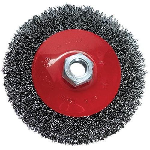 Щетка изготовлена из стальной проволоки. Применяется для очистки металлических поверхностей от ржавчины и грязи. Тип посадки – М14.